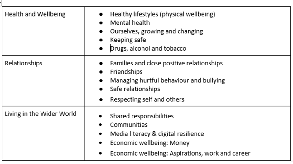 Our personal development curriculum is delivered through teaching in PSHE (Personal, Social, Health and Economic Education), SMSC (Spiritual, Moral, Social and Cultural development), RSHE (Relationships, Sex and Health Education) and RE (Religious Education). However, it is also implicit and woven into everything we do from citizenship to our school values.