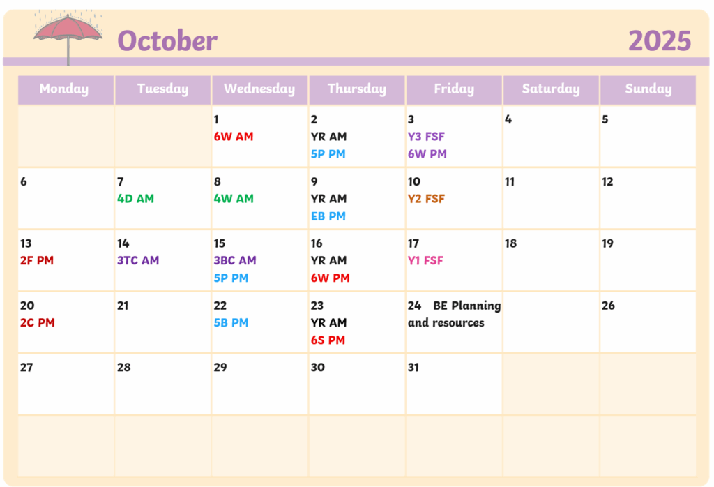 Your child’s class teacher will contact you with details of when these sessions will take place and advise on appropriate clothing and footwear.